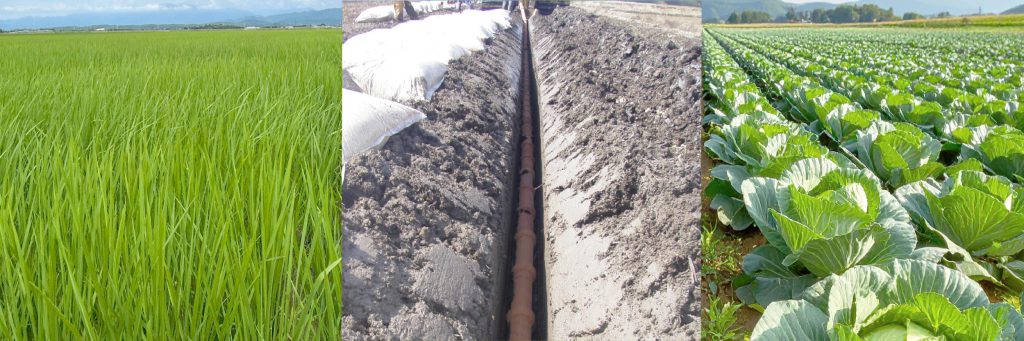 - 土管は目詰まりしにくいので機能低下したほ場でも土管上部の経年劣化した被覆材をモミサブローなどやサブソイラーなどのトラクター接続のアタッチメントを接続することで機能の回復ができます。