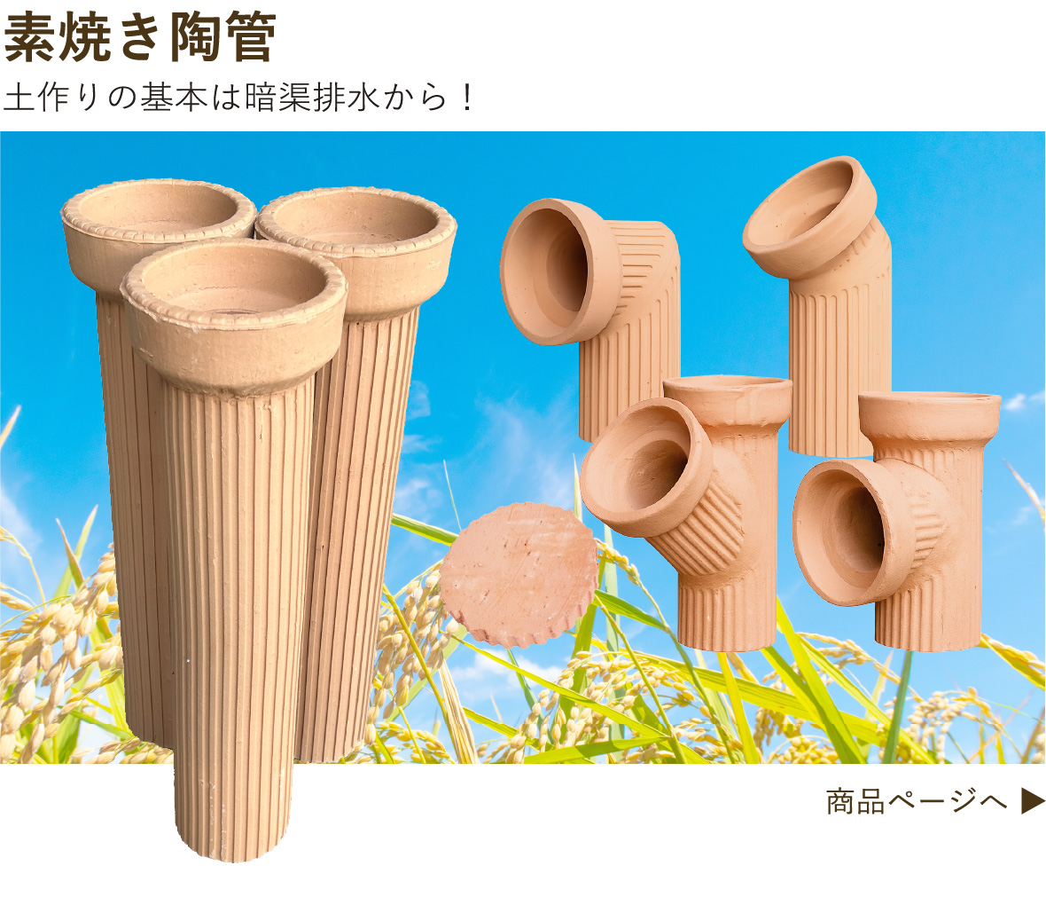 - 施工時には土管の適度な重さにより水気のある掘削渠底より浮くことが無く、渠底へ密着し安定した暗渠排水効果が望めます。