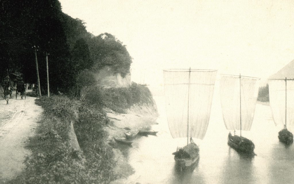 安田の焼き物製品は、昭和30年代まで阿賀野川の帆掛け舟に積んで販売していました。(写真/田辺修一郎氏所蔵)